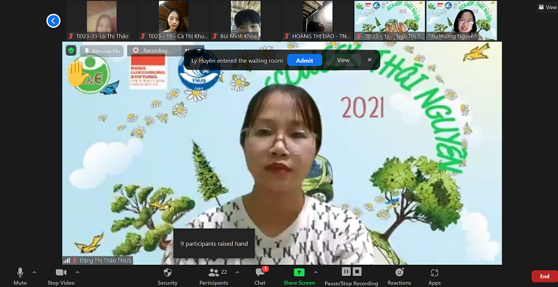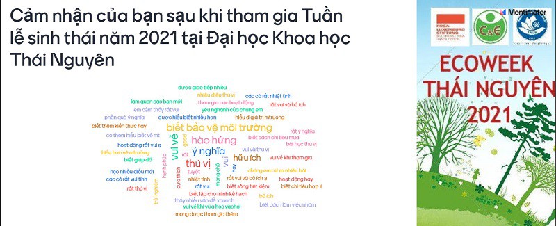 "Tuần lễ sinh thái 2021" được tổ chức trực tuyến bởi Trung tâm C&E Center và sự tham gia của 4 trường Đại học lớn trong cả nước: Đại học Khoa học – ĐHTN, Đại học Đà Lạt, Đại học Sư phạm Đà Nẵng, Đại học Nông lâm Thành phố Hồ Chí Minh dưới sự tài trợ của Quỹ Rosa Luxemburg Stiftung khu vực Đông Nam Á. Chương trình không chỉ góp phần nâng cao giá trị của những sản phẩm đã qua sử dụng mà còn thay đổi nhận thức của mọi người trong việc bảo vệ môi trường, bảo vệ cuộc sống của chính mình và những người xung quanh.