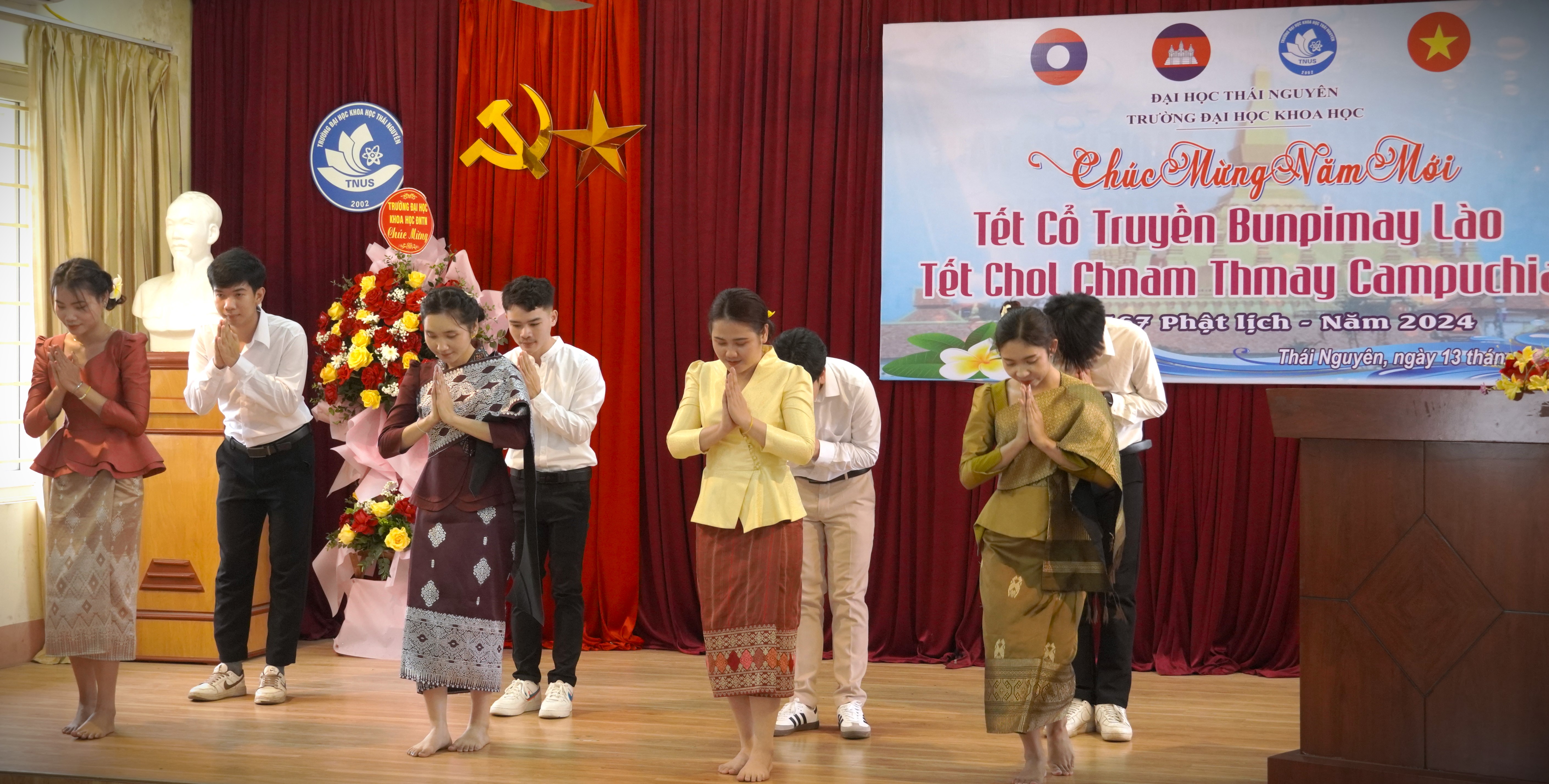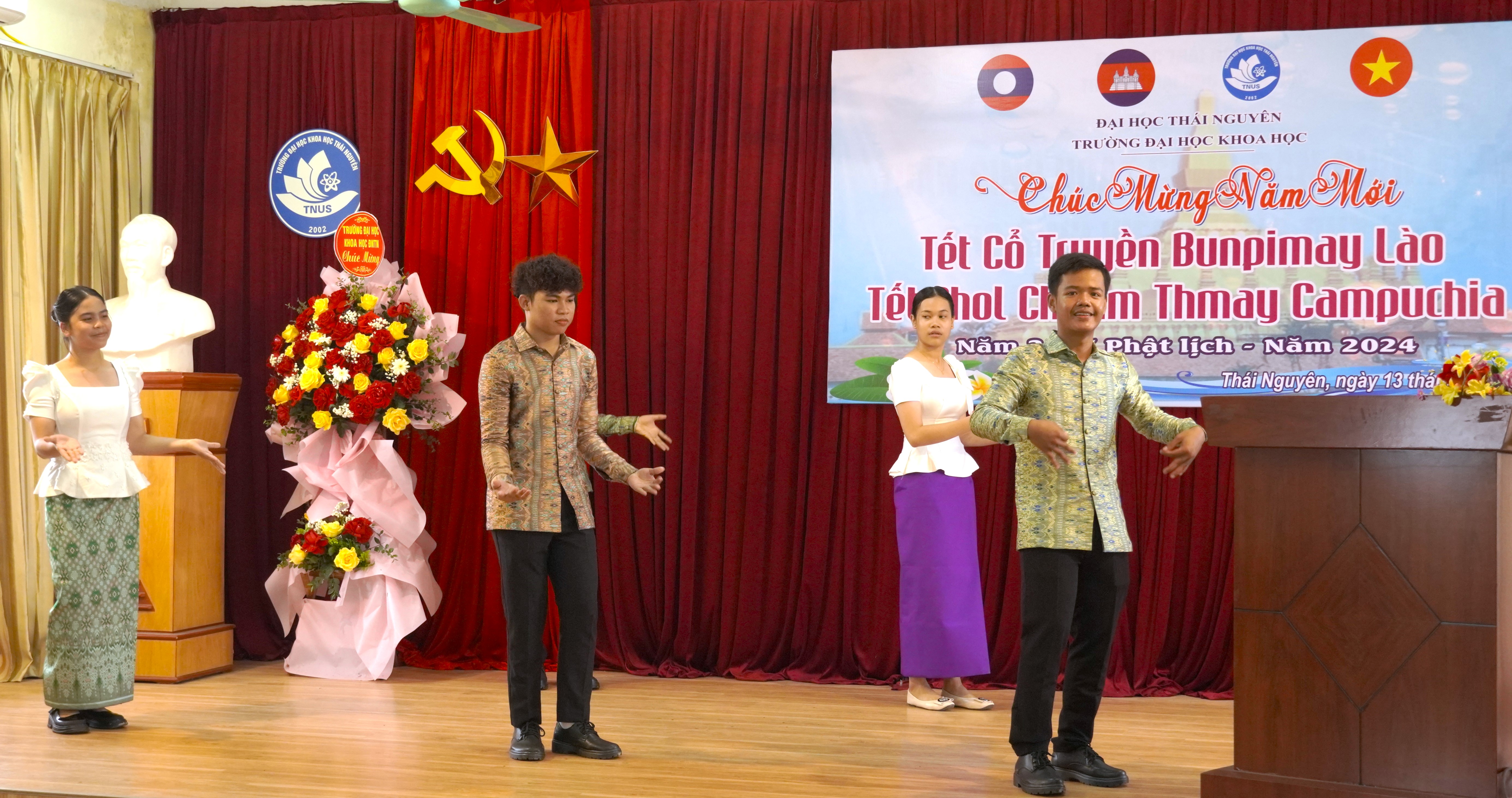 Chiều ngày 13/4, Trường Đại học Khoa học đã long trọng tổ chức chương trình chào đón năm mới Tết Bunpimay - Lễ tết truyền thống của nước Cộng hòa Dân chủ Nhân dân (CHDCND) Lào và Tết Chol Chnam Thmay – Lễ tết truyền thống của Vương quốc Campuchia, năm 2565 Phật lịch cho các bạn Lưu học sinh (LHS) Lào và Campuchia đang theo học tại Trường.