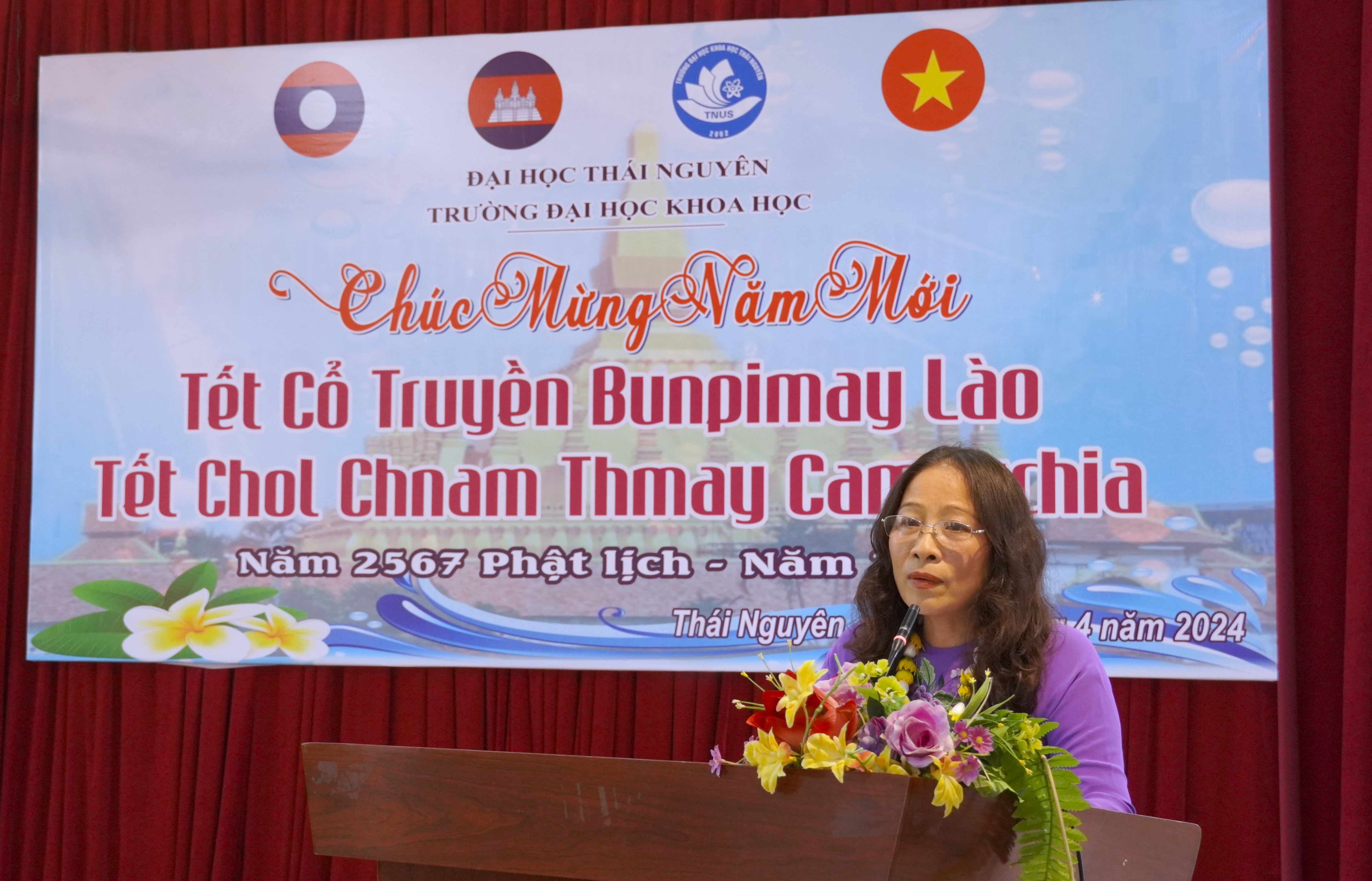 Đại diện lãnh đạo Nhà trường, PGS.TS. Pham Thị Phương Thái – Phó Hiệu trưởng Nhà trường, đã gửi những lời chúc đến các bạn LHS Lào đang học tập tại Trường: “Các thầy cô Trường ĐHKH sẽ luôn đồng hành cùng các em trong chặng đường học tập tại đây. Nhân dịp năm mới, thay mặt Ban giám hiệu Nhà trường, xin gửi lời chúc sức khỏe, hạnh phúc, thành công đến các em sinh viên quốc tế đang học tập tại trường ĐHKH. Chúc cho các em và gia đình một năm mới thật nhiều may mắn, thuận lợi. Chúc cho mối quan hệ hữu nghị Việt Nam - Lào, Việt Nam - Campuchia mãi luôn bền chặt. Chúc các em luôn chăm chỉ, cố gắng đạt kết quả học tập tốt.”