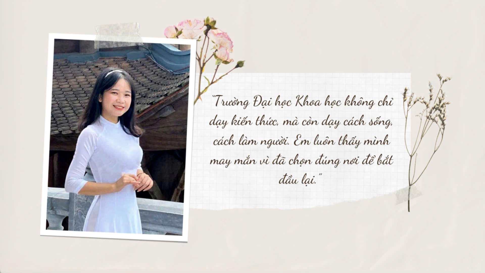 “Trường Đại học Khoa học không chỉ dạy kiến thức, mà còn dạy cách sống, cách làm người. Em luôn thấy mình may mắn vì đã chọn đúng nơi để bắt đầu lại.”