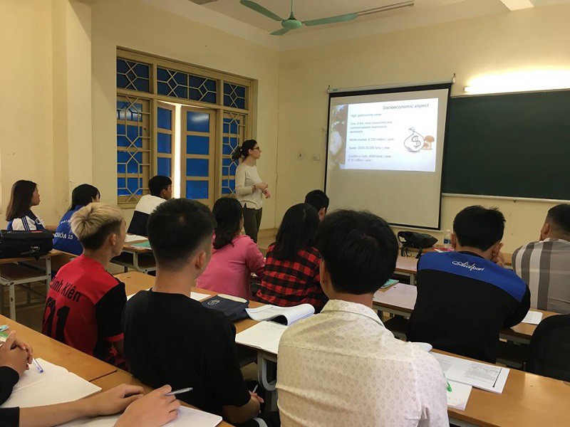 NCS. Olaya Mediavilla Santos giảng dạy về “Phát triển các sản phẩm từ nấm” cho sinh viên Khoa Tài Nguyên và Môi trường