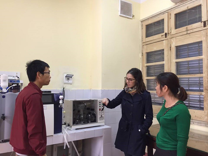 NCS. Olaya Mediavilla Santos cùng TS. Nguyễn Thị Phương Mai và các nhà các nhà nghiên cứu Việt Nam, Tây Ban Nha đi thực địa tại Trạm đa dạng sinh học Mê Linh