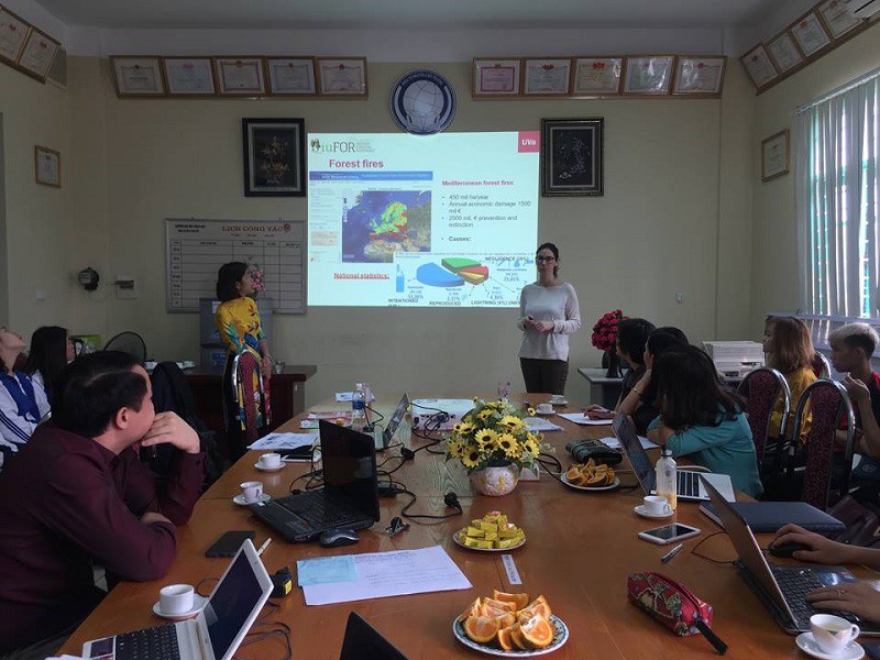 Cũng trong thời gian này, đoàn công tác từ Đại học Valladolid đã phối hợp với Khoa Tài Nguyên và Môi trường tổ chức thành công buổi seminar với chủ đề Quản lý bền vững lâm sản ngoài gỗ. Tại buổi làm việc, NCS. Olaya Mediavilla Santos và TS. Irene Ruano Benito đã dành thời gian chia sẻ về tài nguyên lâm sản ngoài gỗ của Tây Ban Nha (đặc biệt là vi nấm) và vấn đề sử dụng vòng tròn Nelder trong phân tích sinh khối của cây.