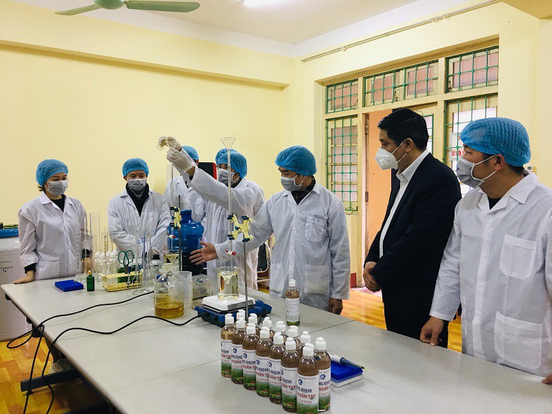 Nhóm nghiên cứu Trường Đại học Khoa học đang sản xuất nước rửa tay sát khuẩn và nước súc miệng