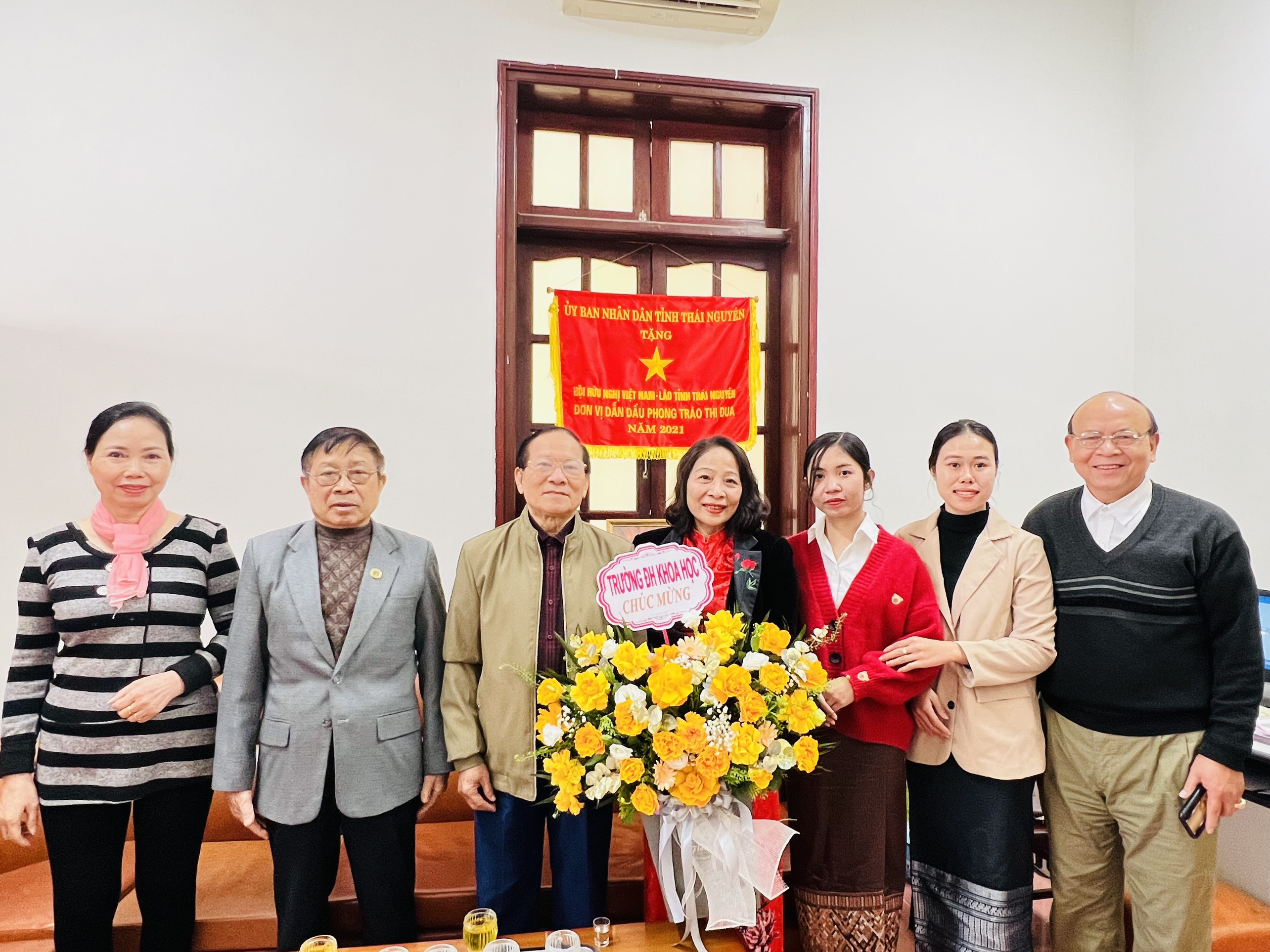 Nhân dịp kỷ niệm 47 năm Quốc khánh nước Cộng hòa Dân chủ Nhân dân Lào (2/12/1975 - 2/12/2022), sáng ngày 02/12/2022, Trường Đại học Khoa học đã đến thăm và chúc mừng Hội Hữu nghị Việt Nam - Lào tại Thái Nguyên và tổ chức tặng hoa chúc mừng các bạn lưu học sinh lào đang học tập tại Trường.