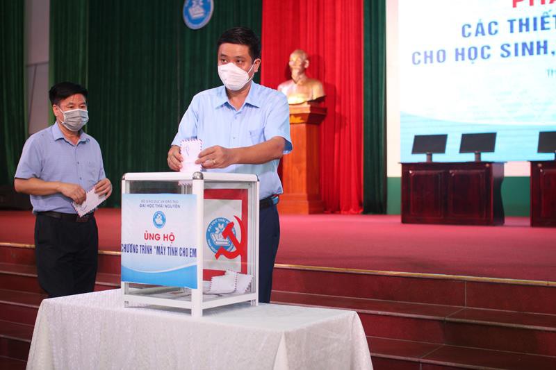 Phát biểu tại buổi lễ, GS.TS Phạm Hồng Quang – Giám đốc Đại học Thái Nguyên cũng cho biết, Đại học Thái Nguyên sẽ sớm triển khai một chương trình ủng hộ khác để nhằm việc ưu tiên hỗ trợ máy tính, dịch vụ viễn thông đối với những học sinh, sinh viên của toàn Đại học Thái Nguyên có hoàn cảnh khó khăn trong học tập, quyết tâm không để một học sinh, sinh viên nào mất cơ hội học tập vì dịch bệnh.