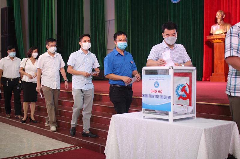 Trước những khó khăn đó, hưởng ứng lời kêu gọi của Thủ tướng Chính phủ nhằm trang bị công cụ học tập trực tuyến cho các em học sinh, sinh viên có hoàn cảnh khó khăn ở các địa phương đang thực hiện Chỉ thị 16/CT-TTg, Đại học Thái Nguyên đã phát động chương trình “Máy tính cho em” nhằm thể hiện trách nhiệm của mình đối với ngành giáo dục, tinh thần “lá lành đùm lá rách”, “tương thân, tương ái” và đại đoàn kết dân tộc để hỗ trợ thiết bị dạy học trực tuyến cho học sinh có hoàn cảnh khó khăn tại các tỉnh đang thực hiện giãn cách xã hội. Thấu hiểu những tâm tư, tình cảm đó, Trường Đại học Khoa học đã vận động cán bộ, viên chức & người lao động (CBVCNLĐ) nhà trường tham gia ủng hộ chương trình với kinh phí là 80 triệu đồng. Bên cạnh đó, Công Đoàn và Đoàn Thanh niên Trường Đại học Khoa học cũng cùng chung tay ủng hộ chương trình hết sức ý nghĩa này.