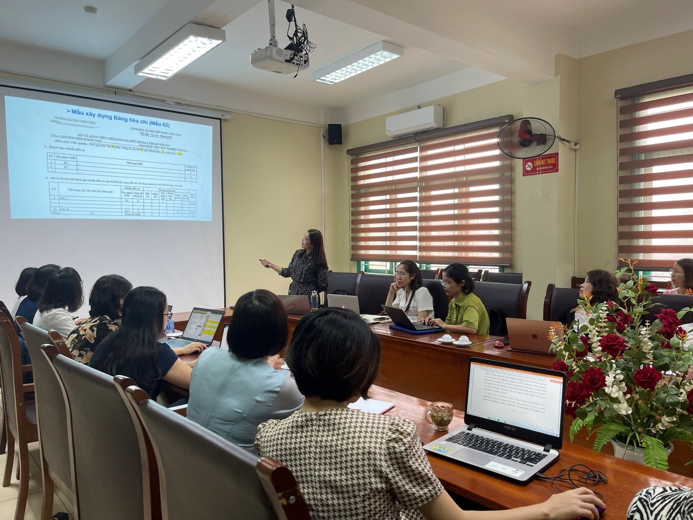 Dưới đây là một số hình ảnh của hoạt động tập huấn xây dựng Bảng tiêu chí/Bộ câu hỏi và tổ chức đánh giá chuẩn đầu ra: