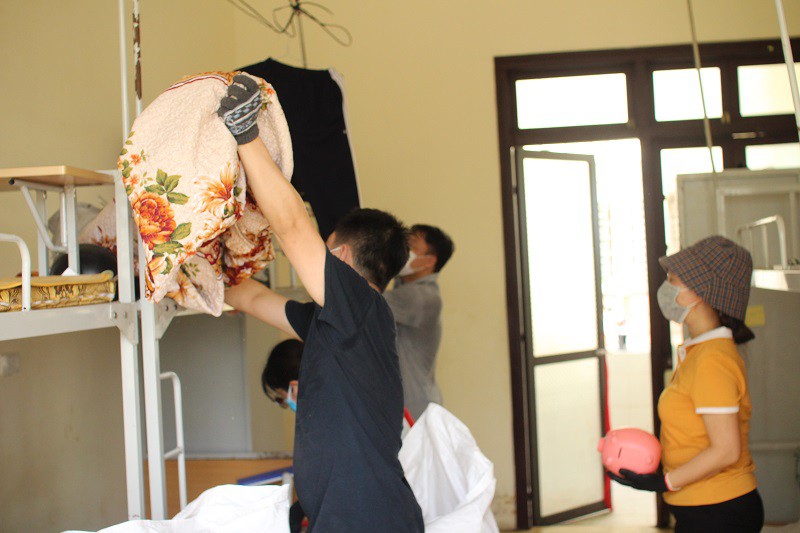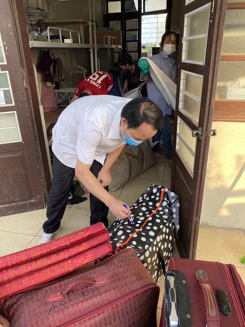 Theo kế hoạch, các cán bộ giảng viên của Nhà trường đã chia thành các nhóm, cùng tiến hành thu dọn đồ dùng của sinh viên như sách sở, vật dụng học tập, quần áo, chăn màn.
