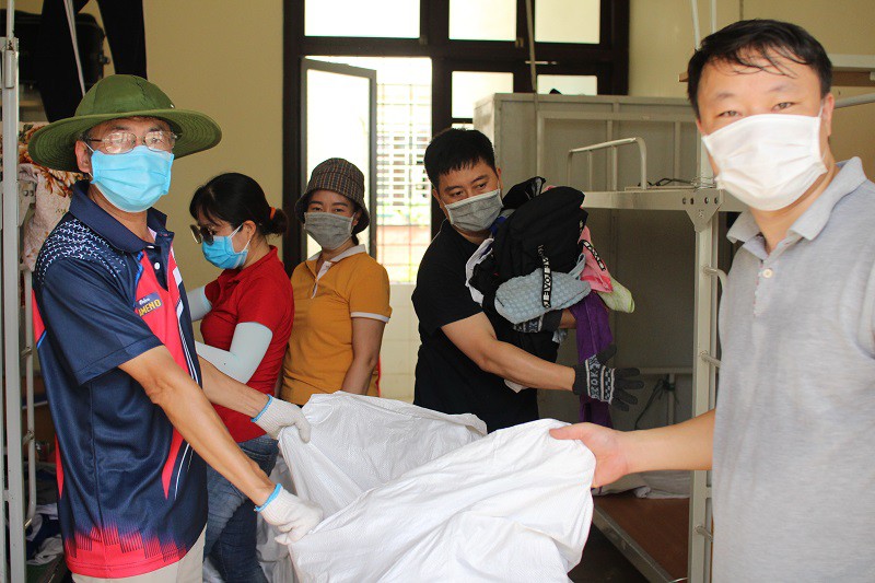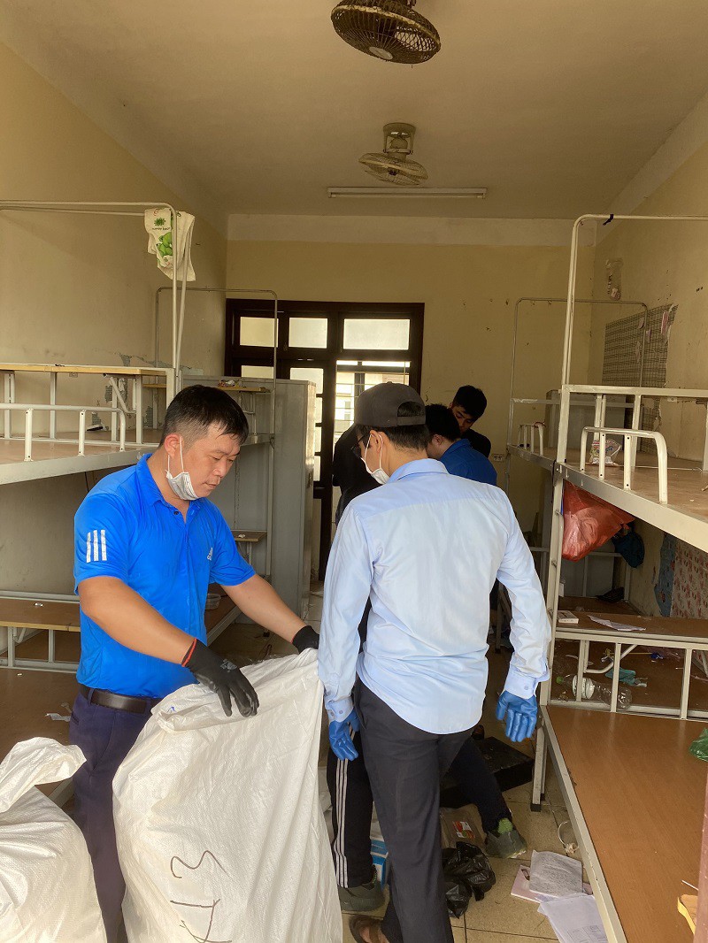 Đội ngũ cán bộ trường Đại học Khoa học dọn dẹp vệ sinh sạch sẽ khu nhà cách ly