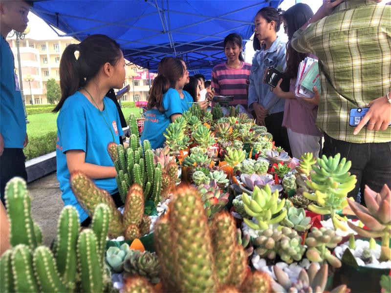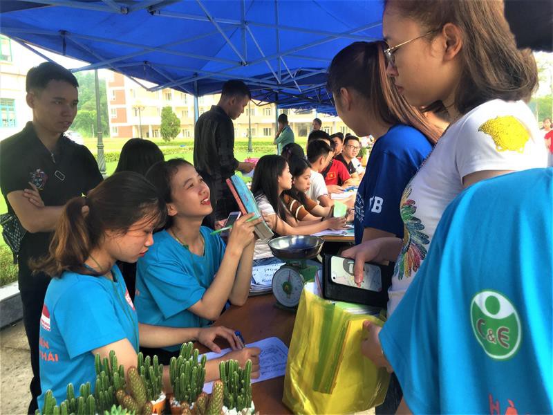 Trong buổi sáng khai mạc đã có rất nhiều hoạt động được diễn ra, tạo nên một sân chơi bổ ích, sôi động cho sinh viên. Các bạn được trải nghiệm cách đan rổ, gấp lá, viết nguyện vọng lên cây điều ước, pha chế xà phòng, làm vườn sinh thái từ các vật liệu tái chế, chơi team building, lấy giấy cũ đổi cây xanh,… cùng nhiều hoạt động ý nghĩa khác. Ai cũng háo hức đăng ký tham gia các hoạt động để tích lũy sao đổi quà ở cuối chương trình.