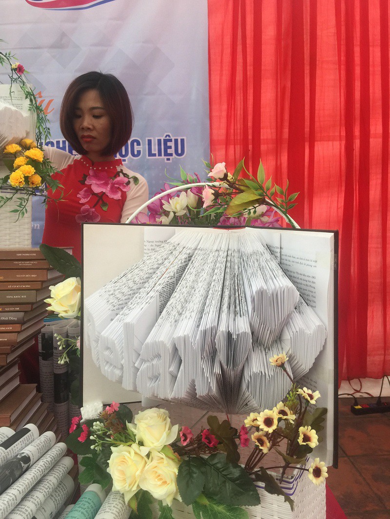 - Gấp chữ nghệ thuật, sử dụng các cuốn sách dày gấp thành các chữ liên quan đến SÁCH như READ, STUDY, CREAT, SHARE, RELAX.