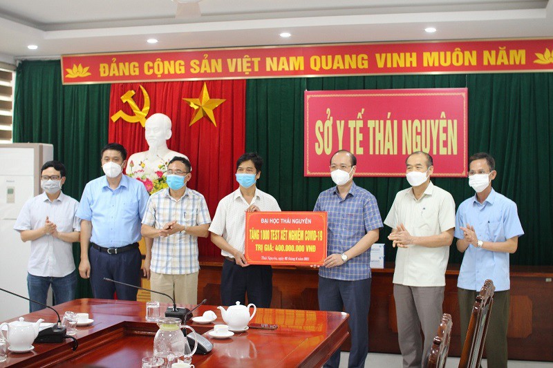 Tiếp nối những hoạt động thiết thực đó, chiều ngày 02/6/2021, tại Sở Y tế tỉnh Thái Nguyên, dưới sự chủ trì của Đại học Thái Nguyên, Trường Đại học Khoa học đã tổ chức trao tặng 1.000 test xét nghiệm COVID-19 cho tỉnh Thái Nguyên phục vụ công tác phòng chống dịch bệnh, tổng kinh phí trị giá 400 triệu đồng. Trước đó, nhóm nghiên cứu do TS Nguyễn Phú Hùng - Trưởng Khoa Công nghệ sinh học, Trường Đại học Khoa học - Đại học Thái Nguyên làm trưởng nhóm đã thực hiện thành công đề tài NCKH cấp tỉnh: “Nghiên cứu, phát triển bộ sinh phẩm phát hiện SARS-CoV2 virus bằng kỹ thuật Realtime PCR”. Bộ sinh phẩm đã đạt được các tiêu chuẩn độ nhạy lâm sàng là 100%, độ đặc hiệu lâm sàng đạt 100%, độ đặc hiệu phân tích đạt 100%; thời gian thực hiện phản ứng Realtime PCR dao động từ 54 phút đến 70 phút tùy theo từng hệ thống PCR, nhanh hơn so với hầu hết các bộ Kit Realtime PCR hiện nay từ 25 đến 30 phút, giá thành giảm 15 đến 30% so với một số bộ Kit đang được sử dụng hiện nay.