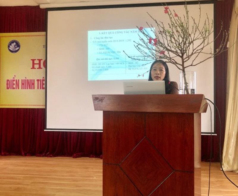 TS. Lê Thị Ngân - Trưởng phòng Tổng hợp đã trình bày Báo cáo tổng kết thi đua 5 năm (2014-2019) của Trường, với các kết quả cụ thể như: