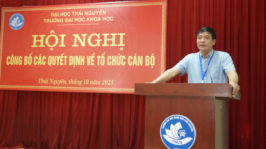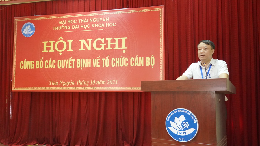 Thực hiện Kế hoạch số 1141/KH-ĐHKH ngày 11/9/2023 về việc bổ nhiệm viên chức quản lý Trường Đại học Khoa học đợt 2 năm 2023; nhằm bổ sung, kiện toàn đội ngũ lãnh đạo, quản lý cho một số đơn vị còn thiếu vị trí lãnh đạo quản lý trong Trường, đáp ứng yêu cầu thực tiễn công công tác, ngày 18/9/2023, Nhà trường đã thực hiện quy trình bổ nhiệm viên chức quản lý đợt 2 năm 2023. Sau khi trình cấp có thẩm quyền phê chuẩn, Nhà trường tổ chức Hội nghị công bố các quyết định về công tác tổ chức cán bộ.