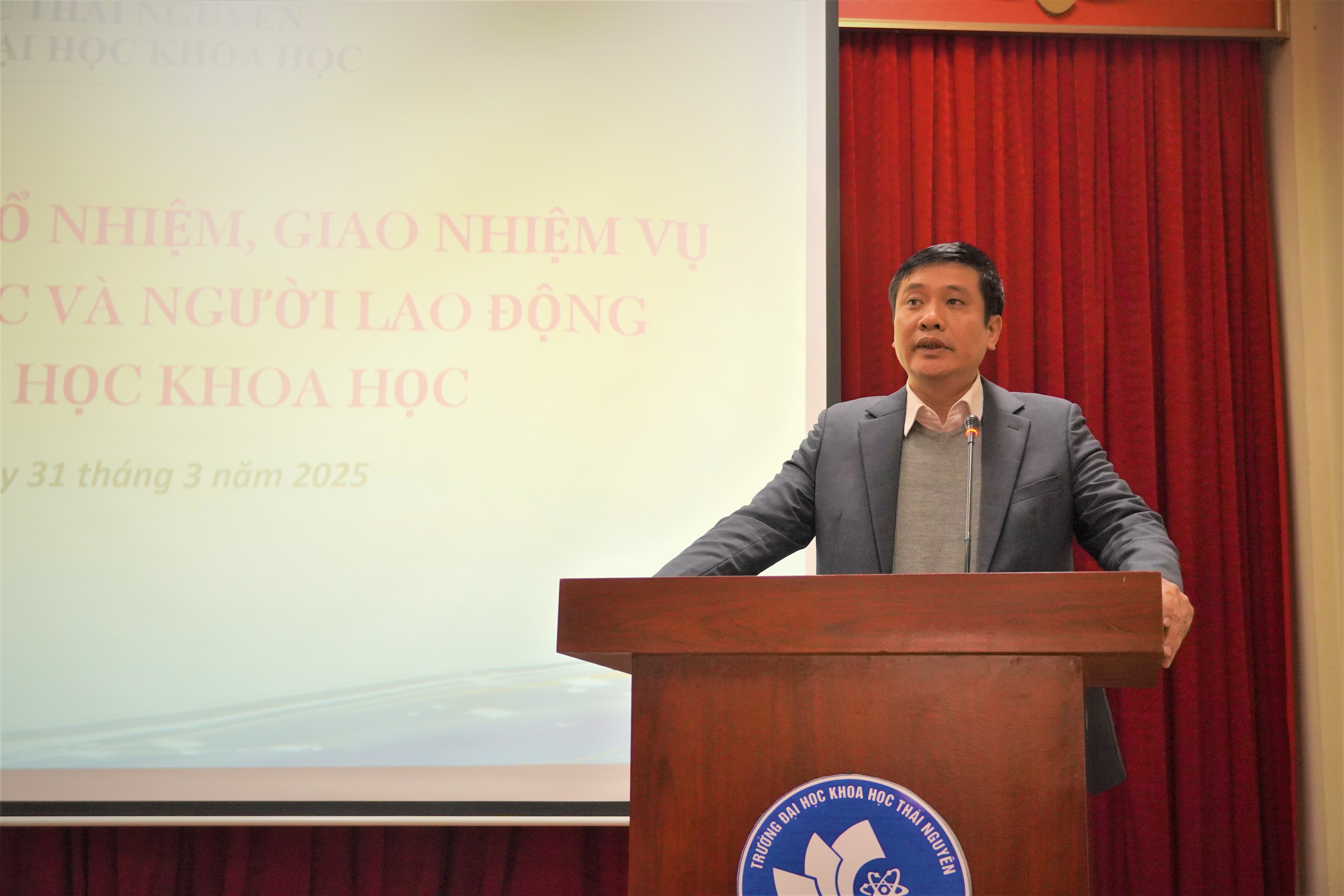 Nhằm bổ sung, kiện toàn đội ngũ lãnh đạo, quản lý cho một số đơn vị còn thiếu vị trí lãnh đạo quản lý trong Trường, đáp ứng yêu cầu thực tiễn công công tác, sáng ngày 31/3/2025, Trường Đại học Khoa học long trọng tổ chức Hội nghị công bố và trao Quyết định bổ nhiệm, giao nhiệm vụ đối với viên chức, người lao động đợt 1 năm 2025.