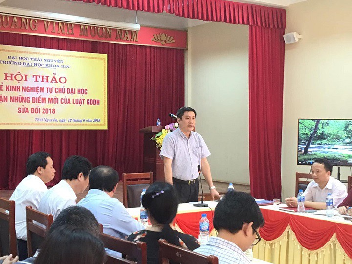 Thực hiện văn bản số 499/BGDĐT – GDĐH về việc Chuẩn bị thực hiện Luật sửa đổi, bổ sung một số điều của Luật Giáo dục Đại học, ngày 12/6/2019, tại Hội trường tầng 5 Trường Đại học Khoa học đã diễn ra Hội thảo Chia sẻ kinh nghiệm tự chủ đại học và thảo luận những điểm mới trong Luật Giáo dục đại học sửa đổi 2018.