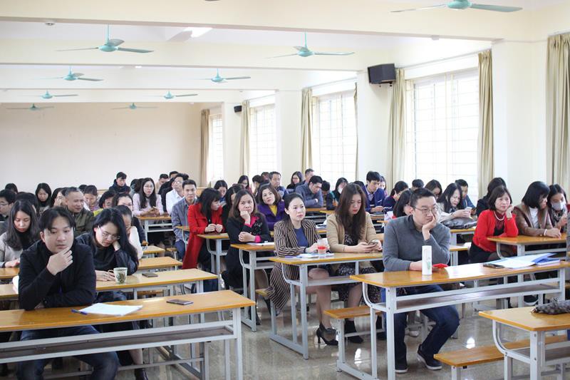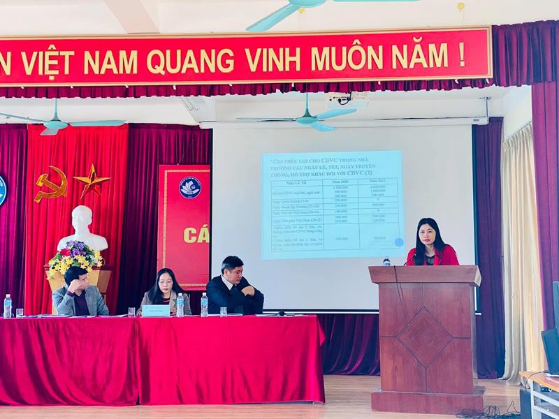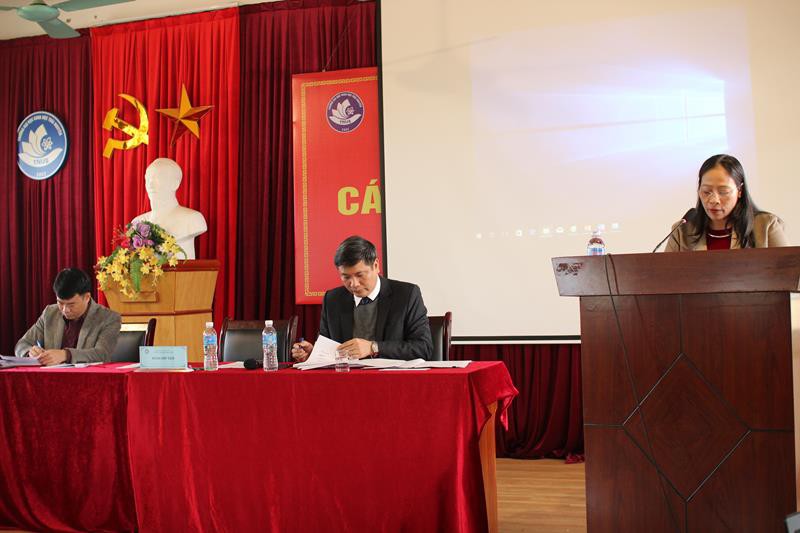 TS. Nguyễn Thu Hằng - Trưởng phòng Kế hoạch - Tài chính đã trình bày Báo cáo thu chi tài chính năm học 2019 – 2020, dự toán ngân sách năm 2021 và thông qua dự thảo Quy chế chi tiêu nội bộ năm 2021.