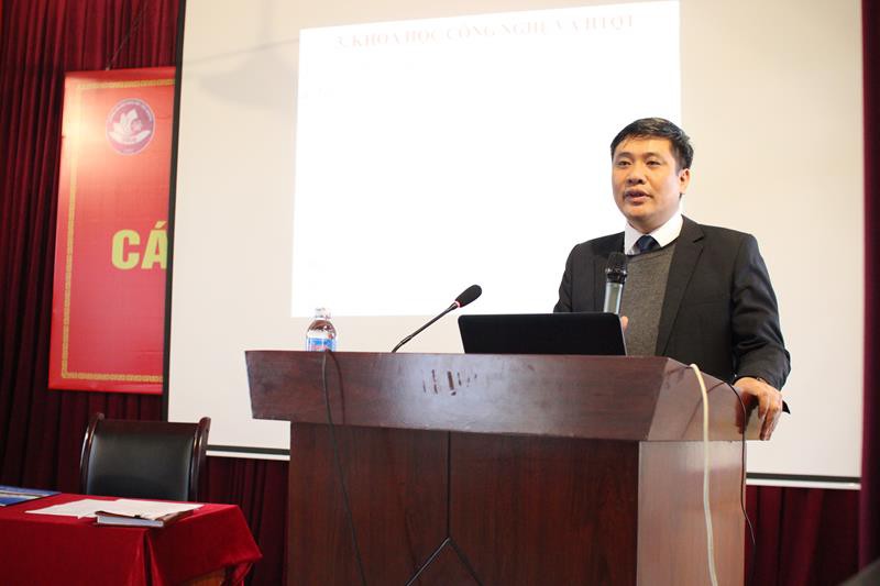 Mở đầu hội nghị, PGS.TS Nguyễn Văn Đăng - Hiệu trưởng Nhà trường, Chủ tịch Đoàn Chủ tịch trình bày Báo cáo tình hình thực hiện nhiệm vụ năm học 2019 - 2020 và phương hướng, nhiệm vụ trọng tâm của Nhà trường năm 2020 - 2021. Báo cáo đã điểm lại những kết quả, thành tựu nổi bật và chỉ ra những hạn chế, khuyết điểm trong năm học 2019 - 2020 ở tất cả các mặt công tác của Nhà trường bao gồm: Tổ chức - Hành chính, Đào tạo, Nghiên cứu khoa học, Hợp tác quốc tế, Khảo thí và Đảm bảo chất lượng, Kế hoạch - Tài chính, Công nghệ thông tin,Thư viện, hoạt động của các tổ chức, đoàn thể. Báo cáo đã nhấn mạnh những điểm sáng trong năm học vừa qua: Giữ vững ổn định, đoàn kết nội bộ; Số lượng, chất lượng các bài báo khoa học công bố trên các tạp chí uy tín được nâng cao: ISI, Scopus, tạp chí quốc gia uy tín; Nâng cao số lượng và chất lượng các Đề tài, Dự án NCKH và CGCN, đặc biệt đề tài có tính ứng dụng và thực tiễn. Đồng thời, Hiệu trưởng cũng đưa ra chủ đề của năm học mới: “Kết nối – Đổi mới – chủ động” cũng như nhiệm vụ trọng tâm và các chỉ tiêu phấn đấu năm học 2020 – 2021