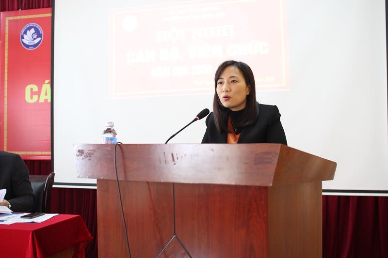 Tại Hội nghị, thay mặt cho Ban Giám hiệu Trường Đại học Khoa học, PGS.TS. Phạm Thị Phương Thái – Phó hiệu trưởng Nhà trường đã trình bày Đánh giá, tổng kết và kiểm điểm trách nhiệm của lãnh đạo trường trong việc thực hiện kế hoạch công tác năm học 2019 – 2020