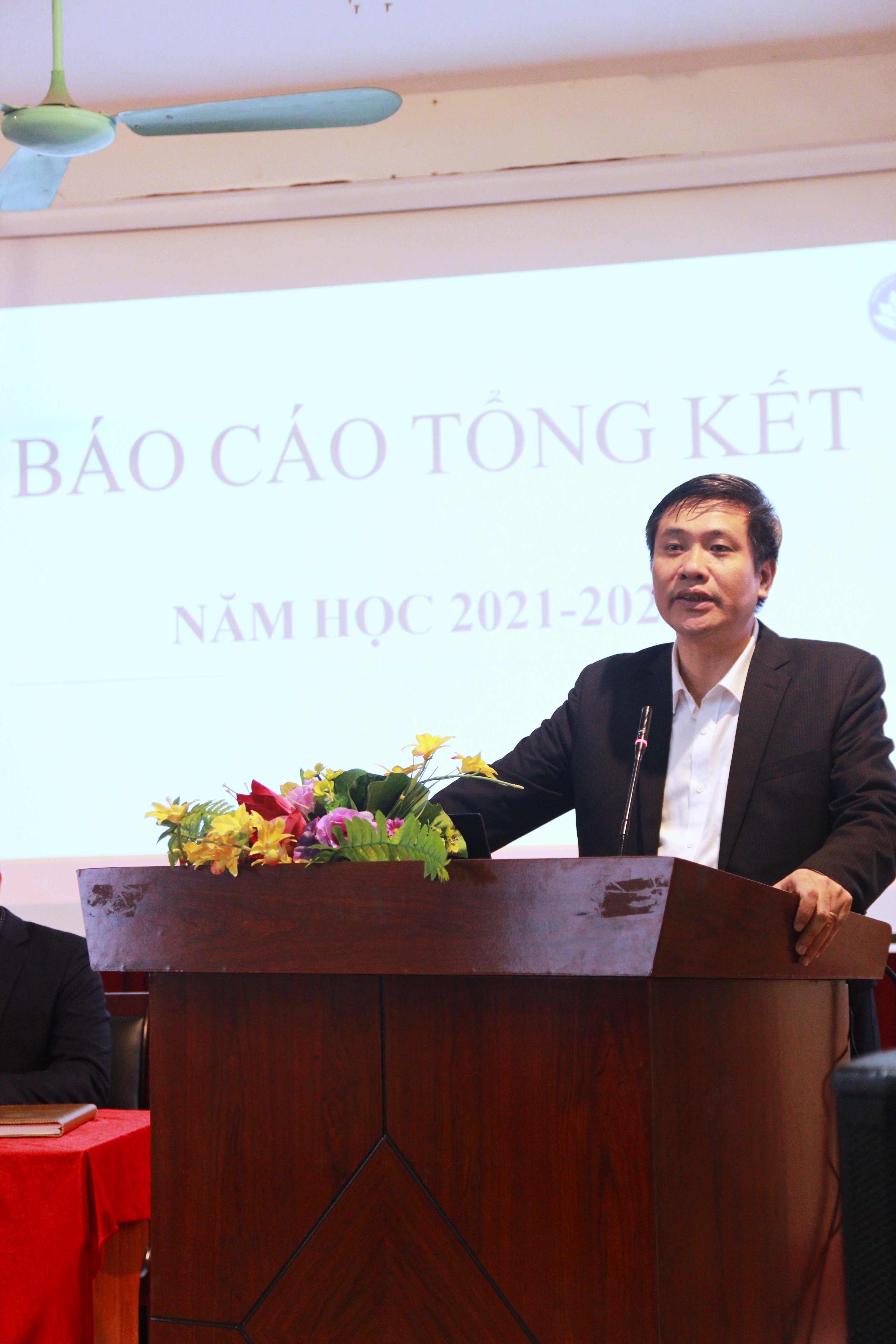 Mở đầu Hội nghị, PGS.TS. Nguyễn Văn Đăng đã trình bày Báo cáo tổng kết năm học 2021 - 2022 và phương hướng, nhiệm vụ năm học 2022 - 2023. Báo cáo nhấn mạnh những thành tích của Trường đã đạt được trong năm học vừa qua ở các mảng công tác như: Tích cực hưởng ứng thực hiện các cuộc vận động lớn của Đảng, Nhà nước và của ngành Giáo dục - Đào tạo; công tác chính trị tư tưởng; công tác tổ chức cán bộ; công tác tuyển sinh; công tác nghiên cứu khoa học, hợp tác quốc tế; công tác kiểm định chất lượng…Bên cạnh những kết quả đã đạt được, báo cáo cũng nêu rõ những hạn chế, khó khăn cần khắc phục và đề ra những nhiệm vụ trọng tâm trong năm học 2022-2023.
