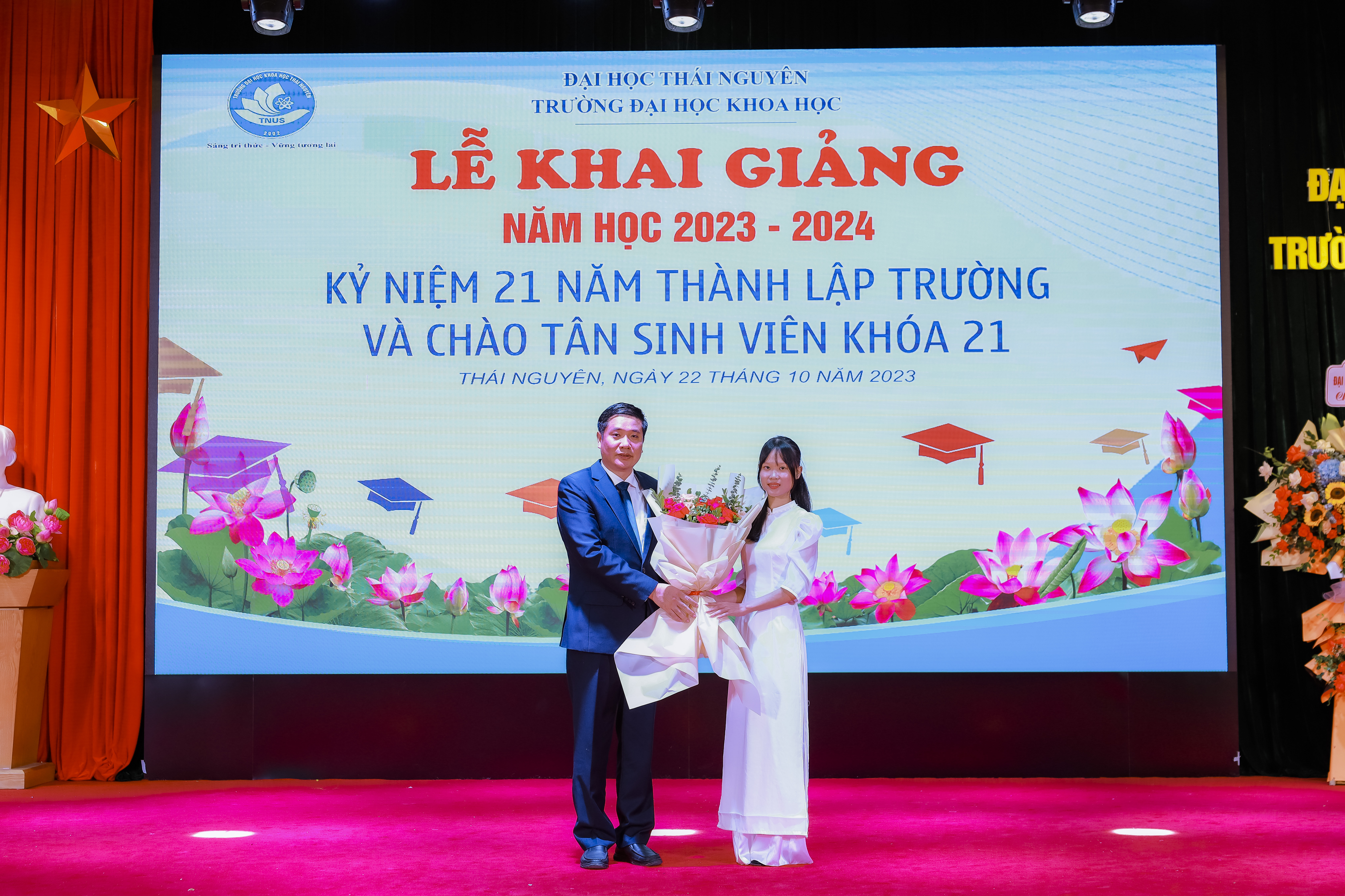 Phát biểu tại buổi lễ, PGS.TS. Trần Thanh Vân, Phó Giám đốc Đại học Thái Nguyên đánh giá cao và ghi nhận những thành tựu của Nhà trường trong năm học vừa qua. Thầy tin tưởng rằng dưới sự lãnh của Đảng uỷ, Hội đồng trường và Ban Giám hiệu, với sức mạnh đoàn kết, Trường Đại học Khoa học sẽ có sự phát triển mạnh mẽ trên nhiều lĩnh vực và gặt hái được nhiều thành công hơn nữa trong năm học 2023-2024.