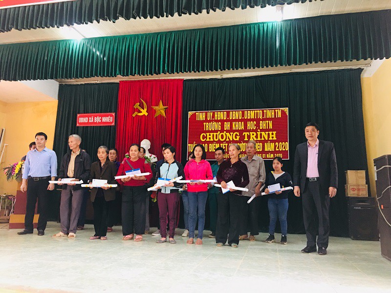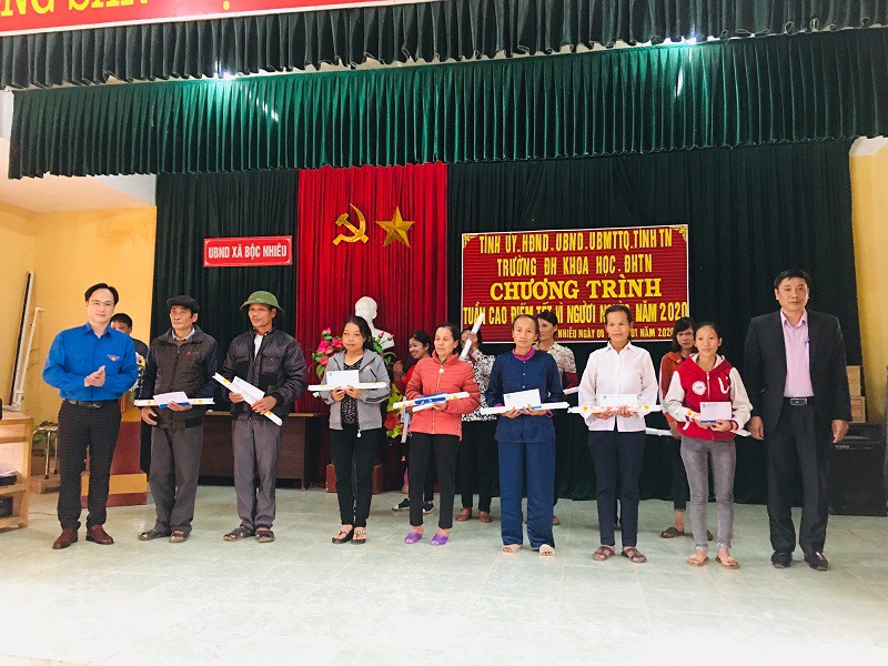 Thực hiện kế hoạch số 02-KH/BCĐ ngày 17 tháng 12 năm 2019 về việc tổ chức “Tuần cao điểm Tết vì người nghèo năm 2020” của Tỉnh Thái Nguyên; Nhằm phát huy truyền thống “Tương thân, tương ái”, “Lá lành đùm lá rách” của dân tộc, chung tay hỗ trợ người nghèo vui Xuân đón Tết cổ truyền. Ngày 08/01/2020, tại Xã Bộc Nhiêu - Huyện Định Hóa- Tỉnh Thái Nguyên, Trường Đại học Khoa học đã tổ chức ủng hộ, hỗ trợ “Tuần cao điểm Tết vì người nghèo năm 2020”.