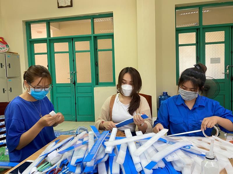 Chỉ trong 02 ngày, với những vật liệu đơn giản: xốp, nhựa Mica trong, băng keo, ghim, chun... các bạn sinh viên Trường Đại học Khoa học đã làm ra hàng trăm tấm chắn giọt bắn để gửi tặng đến tuyến đầu chống dịch. Mỗi tấm chắn đều là những tình cảm yêu thương, san sẻ của các bạn gửi đến tâm dịch với mong muốn chung tay đẩy lùi dịch bệnh.