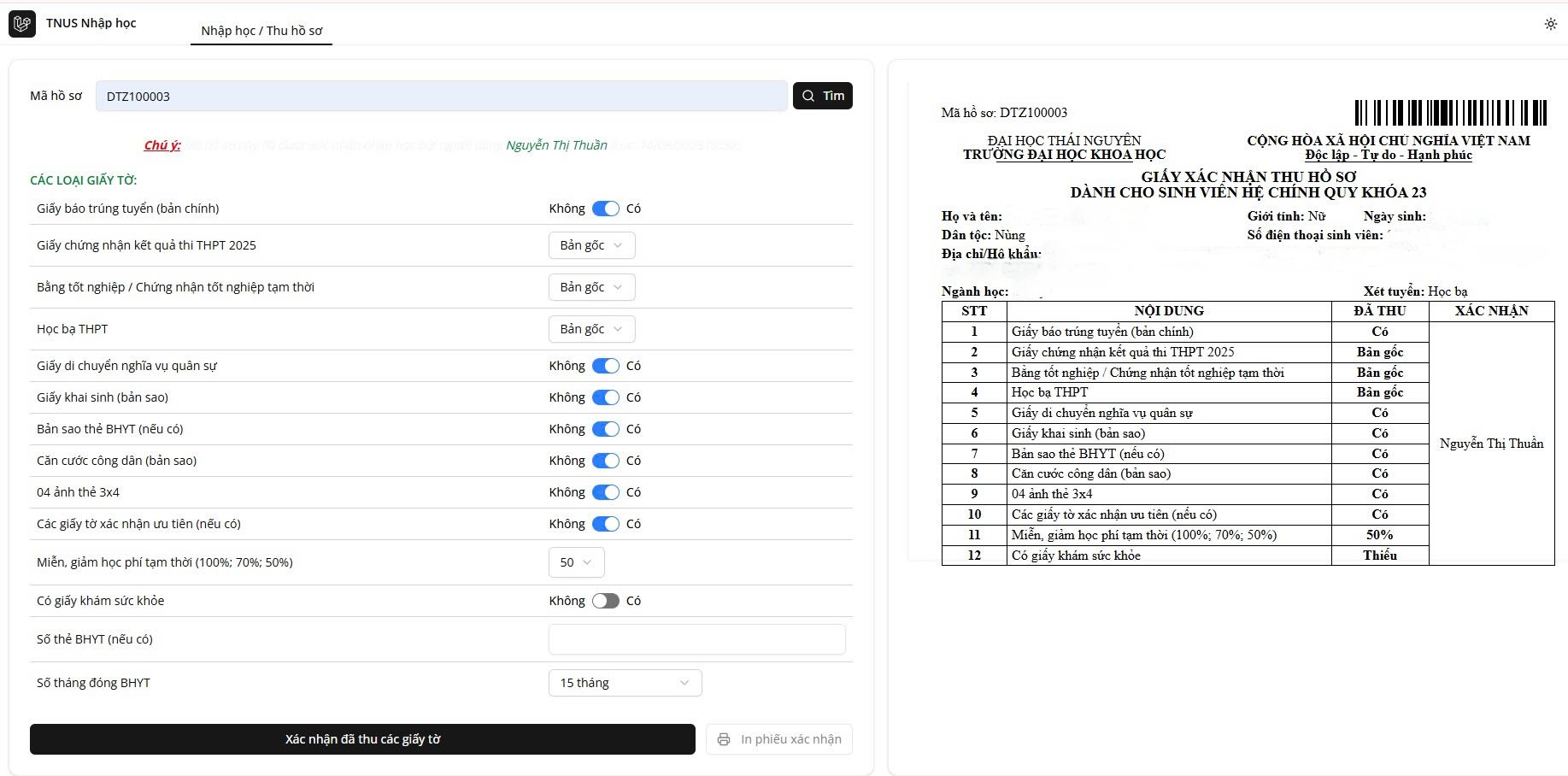 Với sự đầu tư cho công nghệ và sự chuẩn bị chu đáo, quy trình nhập học năm nay tại TNUS được tinh gọn đáng kể, vừa tiết kiệm thời gian, vừa đảm bảo tính tính xác và chặt chẽ trong từng quy trình. Đây không chỉ là bước tiến trong công tác quản lý của Nhà trường mà còn mở ra cơ hội để sinh viên K23 được tiếp cận môi trường học tập hiện đại, năng động và hội nhập ngay từ những ngày đầu tiên đặt chân vào giảng đường đại học.