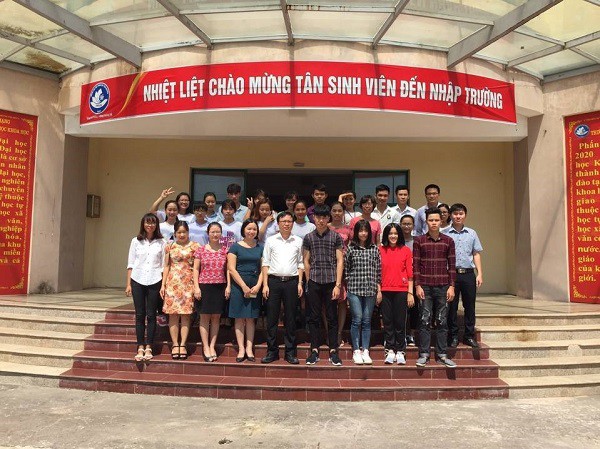 Tập thể thầy cô và các sinh viên, tân sinh viên chụp ảnh lưu niệm.