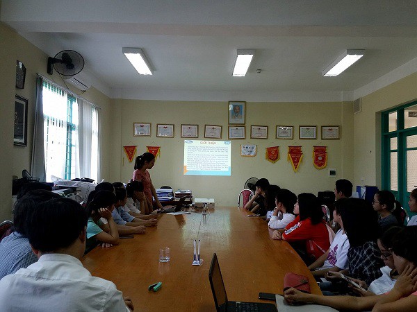 Mở đầu chương trình là phần giới thiệu của ThS. Hoàng Thị Thanh – trợ lý Công tác HSSV về khoa Hóa học, về lịch sử hình thành và phát triển của khoa cũng như cơ cấu tổ chức của khoa. Qua đây các bạn sinh viên mới cũng nắm được hệ thống các chuyên ngành của khoa Hóa học cũng như tình hình phát triển của khoa hiện nay.