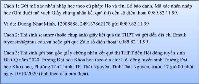 Với hình thức trực tuyến, thí sinh có thể xác nhận nhập học bằng cách: