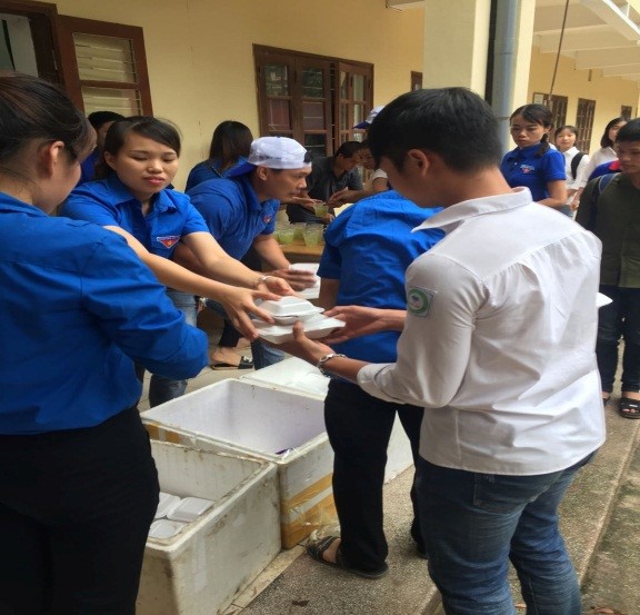 TNV phát cơm miễn phí cho thí sinh